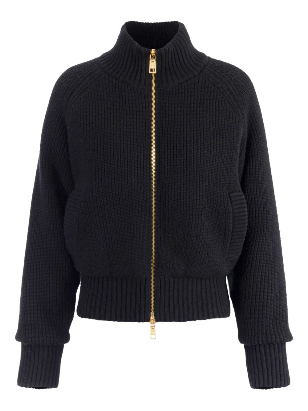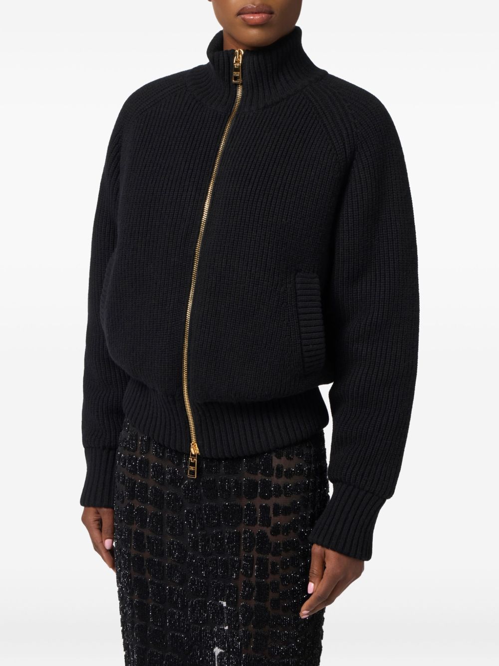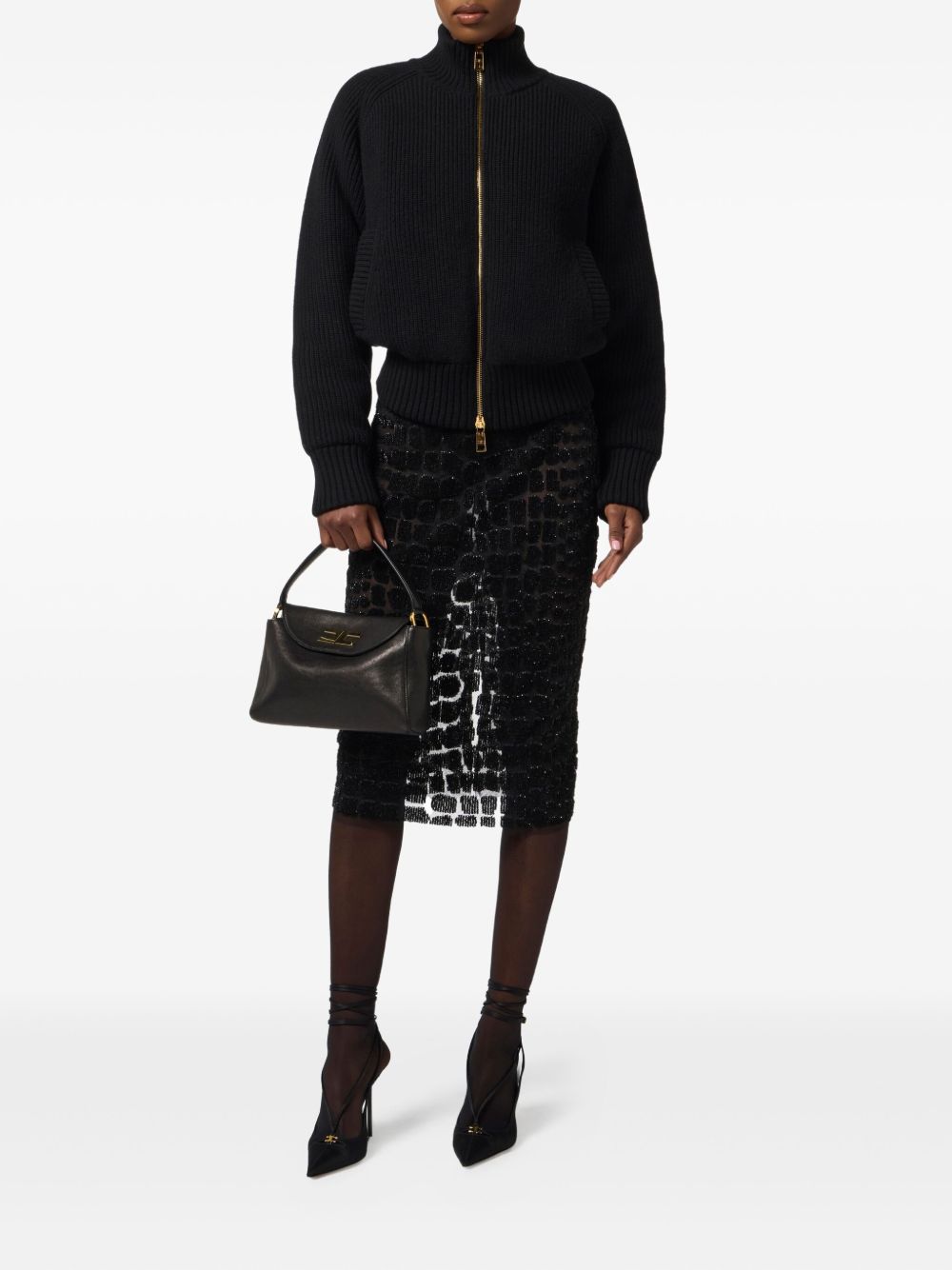 Elisabetta Franchi Ribbed Knit Bomber Jacket With Zip Front