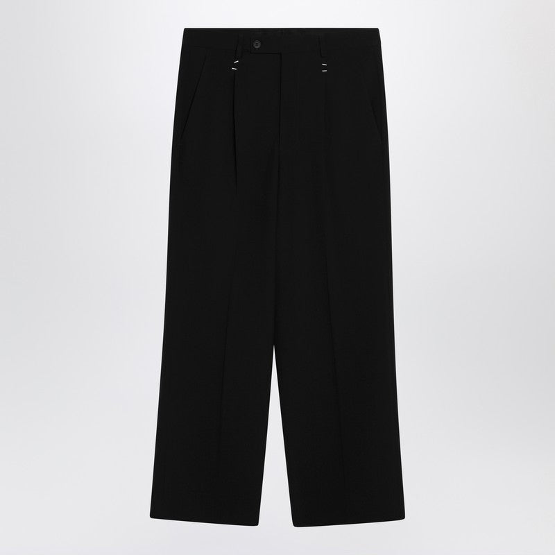 Mm6 Maison Margiela Black Wool-Blend Trousers With Staples