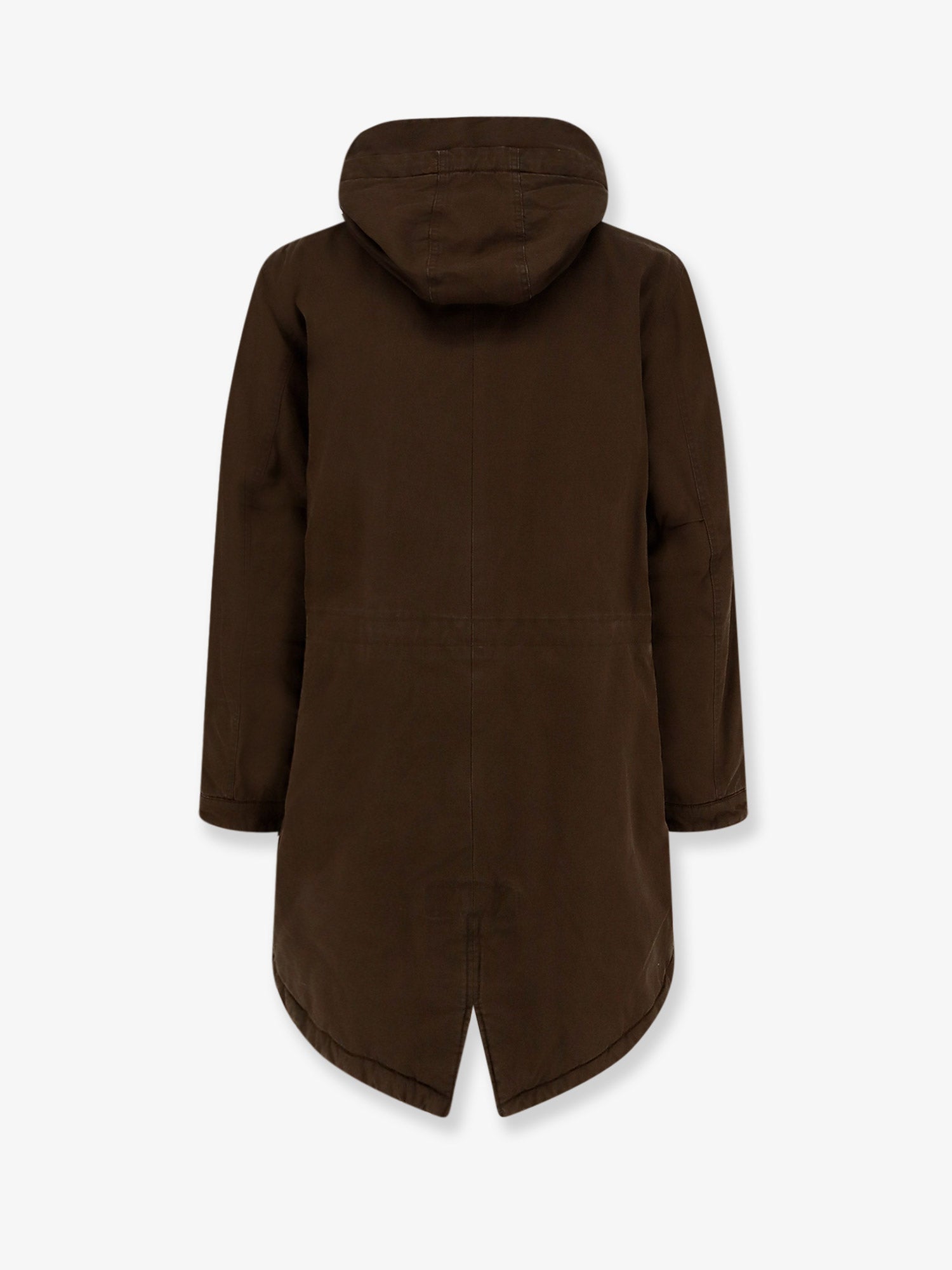 • Zip and snap button closure High collar with hood Front flap pockets Adjustable drawstring Faux fur lining 100% cotton SKU: CI53D53310237