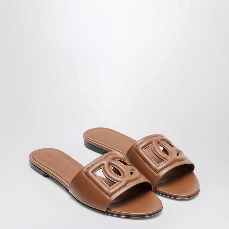 Dolce&Gabbana Brown Leather Slides With Dg Logo