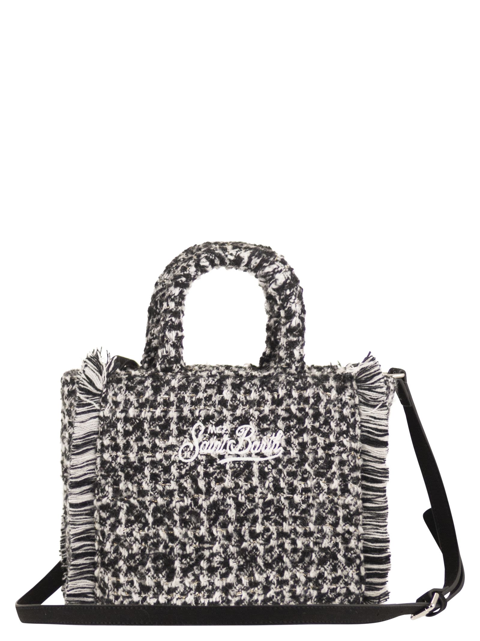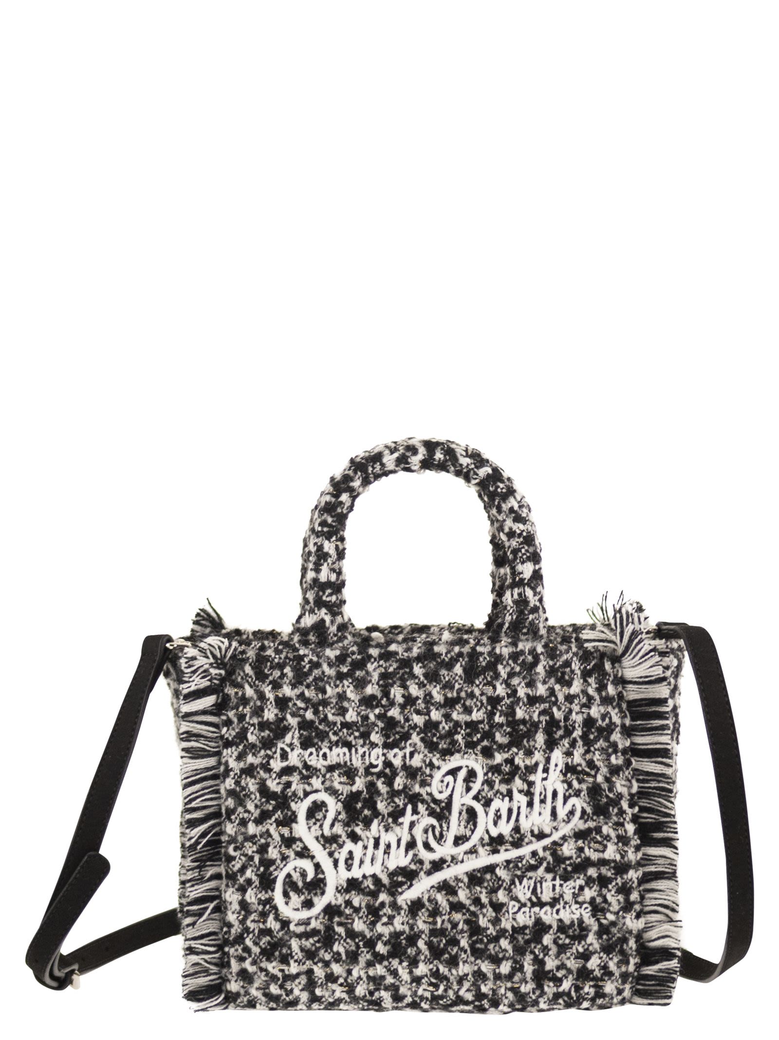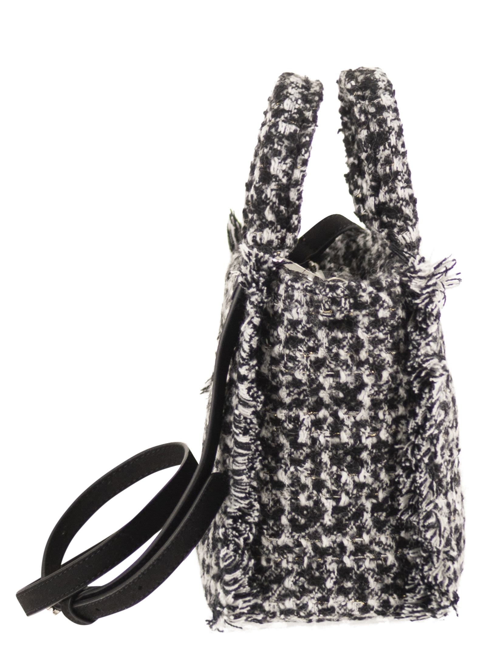The fabric Vanity Mini is designed for those who love bold, original looks. Finished with a logo on the front and fringed edges. - Handbag - Fabric handles - Removable and adjustable shoulder strap - Internal pocket - Embroidered logo, fringed detail DESIGNER ID: VAMI026 01323I